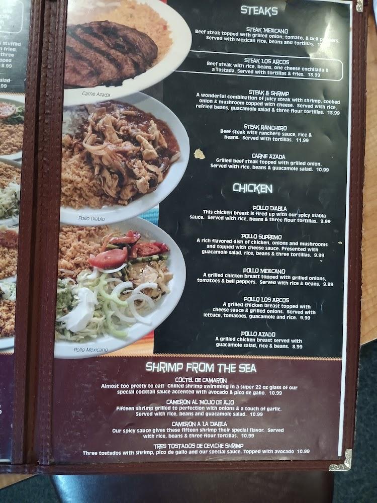 The menu at Los Arcos features a wide array of options, from appetizers to dessert. Popular items include the Arco Dip, enchiladas, and sizzling fajitas. For those looking for lighter fare, taco salads are also available. The prices are quite reasonable, with items ranging from $2.89 to $12.74.